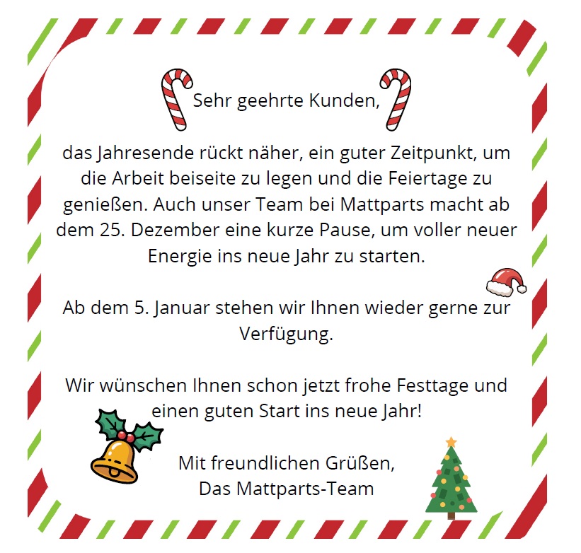 vom 25. Dezember bis zum 2. Januar geschlossen